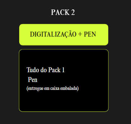 PACK 2 — DIGITALIZAÇÃO + PEN 25,00 € Desconto de %. IVA incluído. Inclui: Tudo do Pack 1 Pen 8GB (entregue em caixa embalada) Ler mais Voucher | Digital Voucher | Cartão Físico - 3,00 € Pen Extra - 5,00 € Impressão adicional 5 fotos - 5,00 € Impressão adicional 10 fotos - 10,00 € Álbum digital organizado - 5,00 € Quantidade Comprar Contactar Partilhar